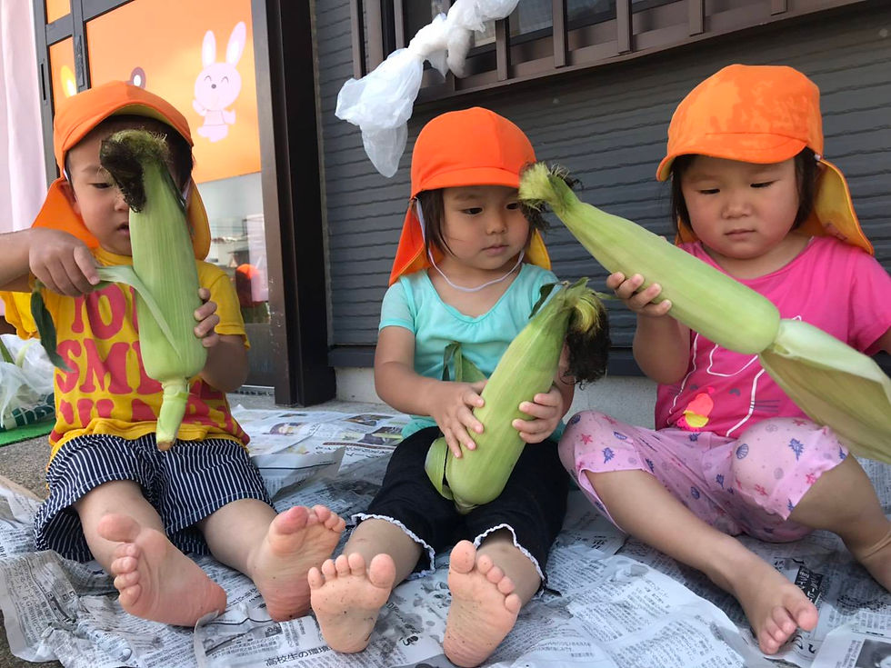 とうもろこし上手にむけるかな~?